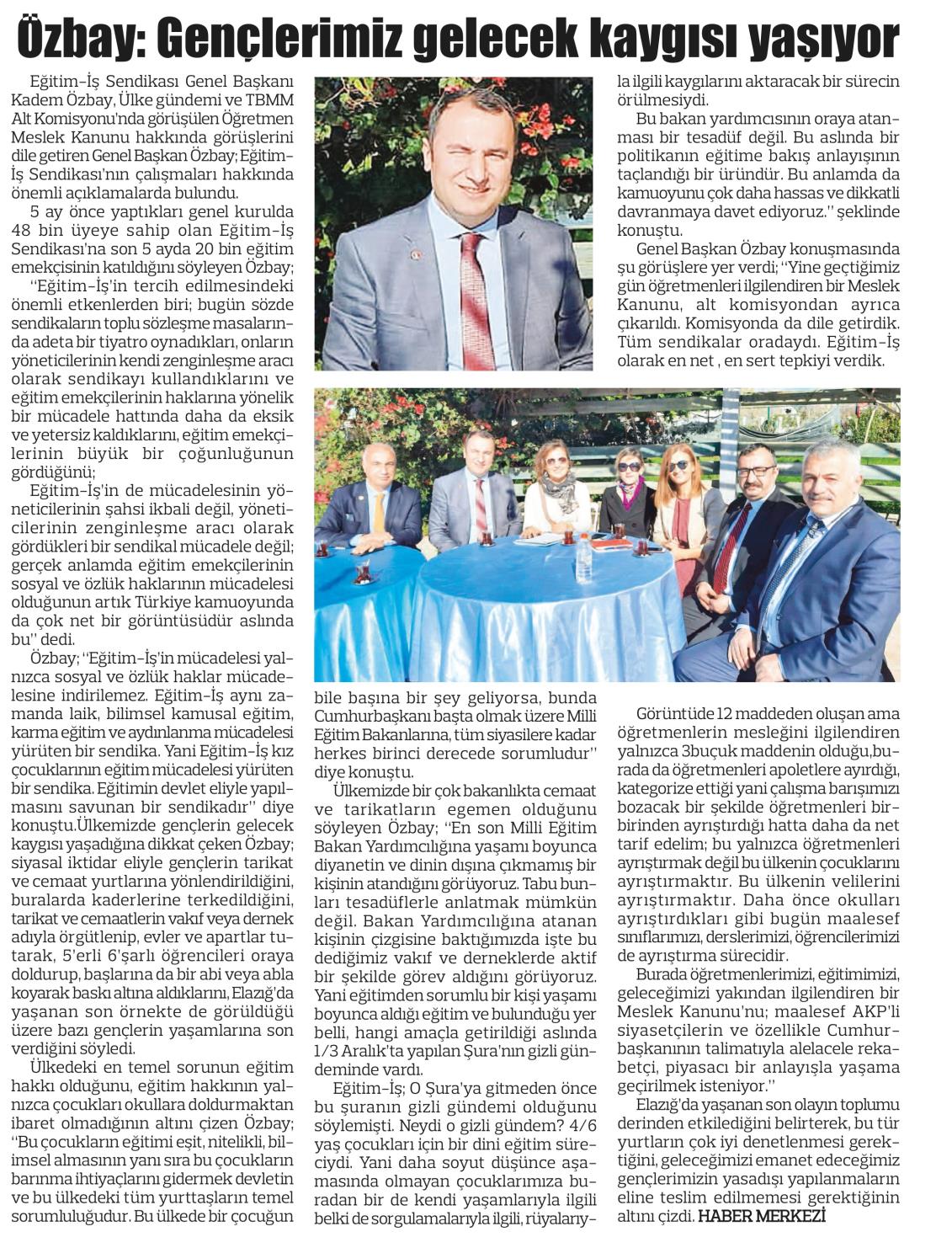 Kadem Özbay:Gençlerimiz Gelecek Kaygısı Yaşıyor-Egemen Gazetesi-17.01.2022