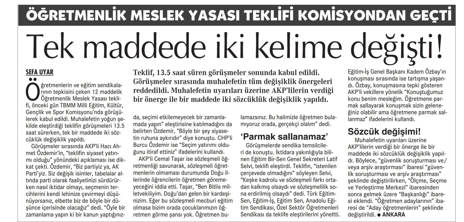 Öğretmenlik Meslek Kanunu Komisyondan Geçti:Tek Maddede İki Kelime Değişti-Cumhurşiyet Gazetesi-12.021.2022
