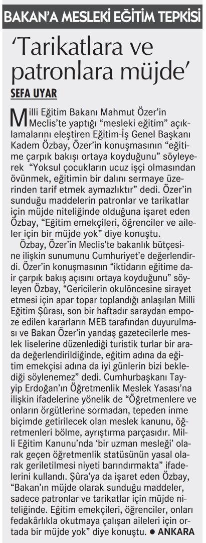 Tarikatlara ve Patronlara Müjde-Cumhuriyet Gazetesi-17.12.2021