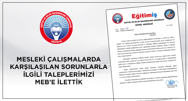 Bu nedenle bakanlığınızca yapılacak olan seminer ve mesleki çalışmaların alanda belirlenen öğretmen ve eğitimin ihtiyaçları dikkate alınarak planlanmasını talep ederiz.
