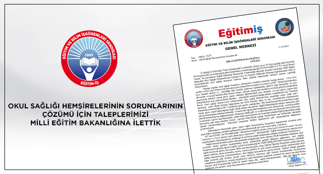Sağlık hemşirelerinden gelen yakınmalardan anlaşılacağı üzere; Merkez İSGB tarafından belirlenen okul revirinde olması gereken malzemelerin temin edilmesinde gerekli bütçenin sağlanması, okul sağlığı hemşiresinin topladığı öğrenci sağlık verilerini kaydedeceği bir VERİ GİRİŞ SİSTEMİ oluşturulması, okuldaki sağlık derslerine girme, kurs açma, MEB sınavlarında görev alma, Eğitim Öğretim Hizmetleri sınıfına tanınan ulaşım indirimi, müze ziyaretleri, tiyatro, sinema indirimi vb. gibi sosyal yaşamda yapılan indirimlerden okul sağlığı hemşirelerinin yararlandırılması, okul sağlığı hemşirelerine pansiyonlarda nöbetçi olduğu günlerde diğer personel gibi ücretsiz yemek yeme hakkının tanınması gibi çalışma koşullarından kaynaklanan sorunlarının giderilmesi, çalışma koşullarının yasal düzenleme yapılarak normatif bir yapıya kavuşturulması böylece okul hizmetlerinde kritik bir öneme sahip olan sağlık hemşirelerinden daha üst düzeyde verim alabilmek için gerekli yasal düzenlemelerin yapılmasını talep ederiz.