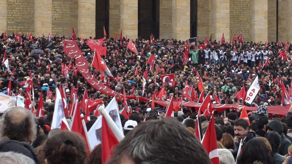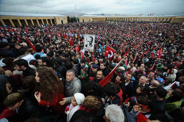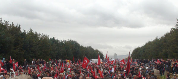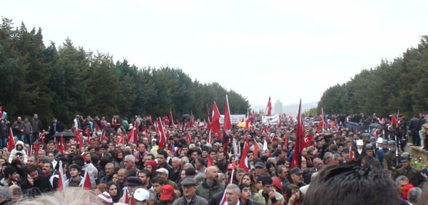 Anıtkabir'in avlusunda Atatürk'ün 10. Yıl Nutku kendi sesinden yayınlandı. Yoğun yağışa rağmen Anıtkabir hınca hınç dolduran vatandaşlar, Atatürk'ün mozolesinin önünden saygı geçişi yaparak, çiçekler bıraktı.