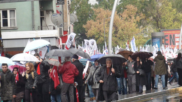 Eğitim-İş, diğer demokratik kitle örgütleriyle birlikte saat 08.30’da, Sıhhiye’deki Zafer Anıtı önünde toplandı. Sağanak yağmur altında gerçekleştirilen törende, Atatürk Anıtı’na kırmızı-beyaz karanfillerden oluşan çelenk konuldu. Atatürk'ün 74 yıl önce ebediyete intikal ettiği saat olan 09.05'de “ti” sesi ve sirenler eşliğinde saygı duruşunda bulunuldu ve İstiklal Marşı okundu. Ardından halkın ve Eğitim-İş üyelerinin yoğun katılımı ile oluşturulan kortej, “Mustafa Kemal’in Askerleriyiz”, “Halkız, güçlüyüz, Atatürkçüyüz” “Gün gelecek devran dönecek, AKP halka hesap verecek”, “Hükümet istifa” sloganları eşliğinde Maltepe üzerinden Anıtkabir'e yürüdü.