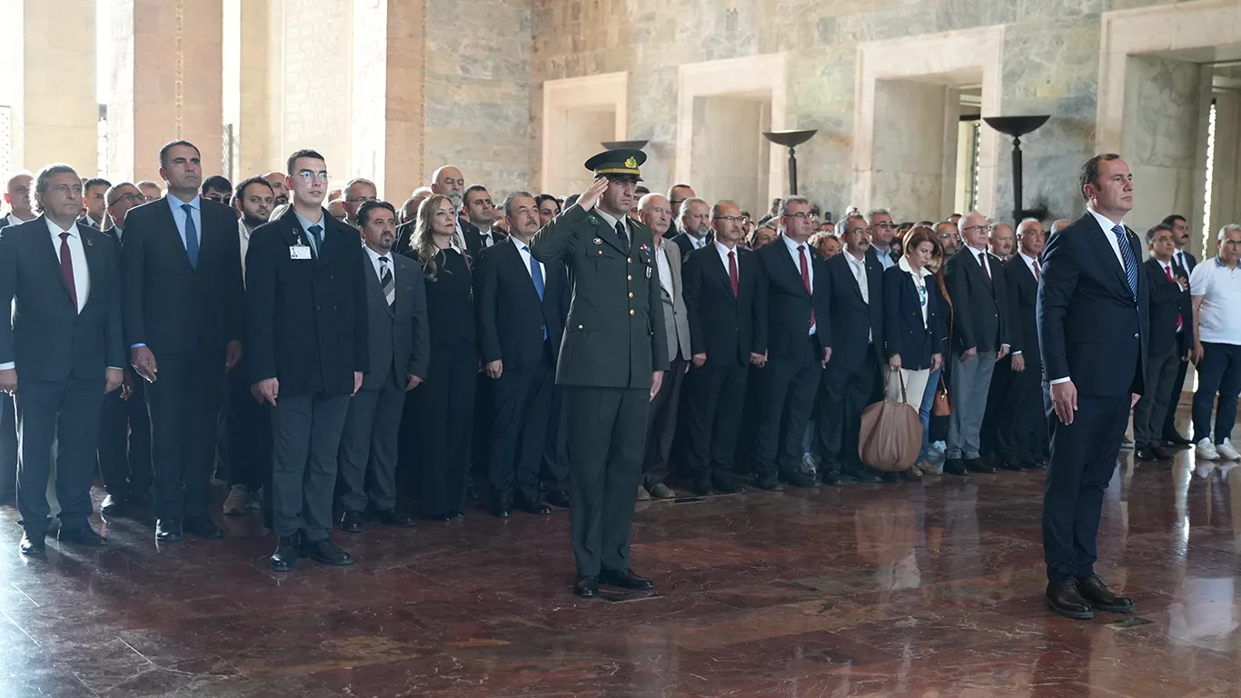 Genel Başkanımız Kadem Özbay, Genel Sekreterimiz Seher Ergin, Genel Mali Sekreterimiz Doğan Dağdelen, Genel Örgütlenme Sekreterimiz Bülent Metin, Genel Özlük-Hukuk ve TİS Sekreterimiz Yeliz Toy, Genel Eğitim Sekreterimiz Veli Fırat Şimşek, Genel Basın-Yayın ve Uluslararası İlişkiler Sekreterimiz Hüseyin Selçuk, önceki dönem genel başkanlarımız Yüksel Adıbelli, Veli Demir, Mehmet Balık, Levent Akça, şube ve temsilcilik başkanlarımız ile Konfederasyonumuz Birleşik Kamu-İş Genel Başkanı Orhan Yıldırım ve Yönetim Kurulu üyeleri, Anıtkabir’de Büyük Önderimiz Mustafa Kemal Atatürk’ün huzuruna çıktı.