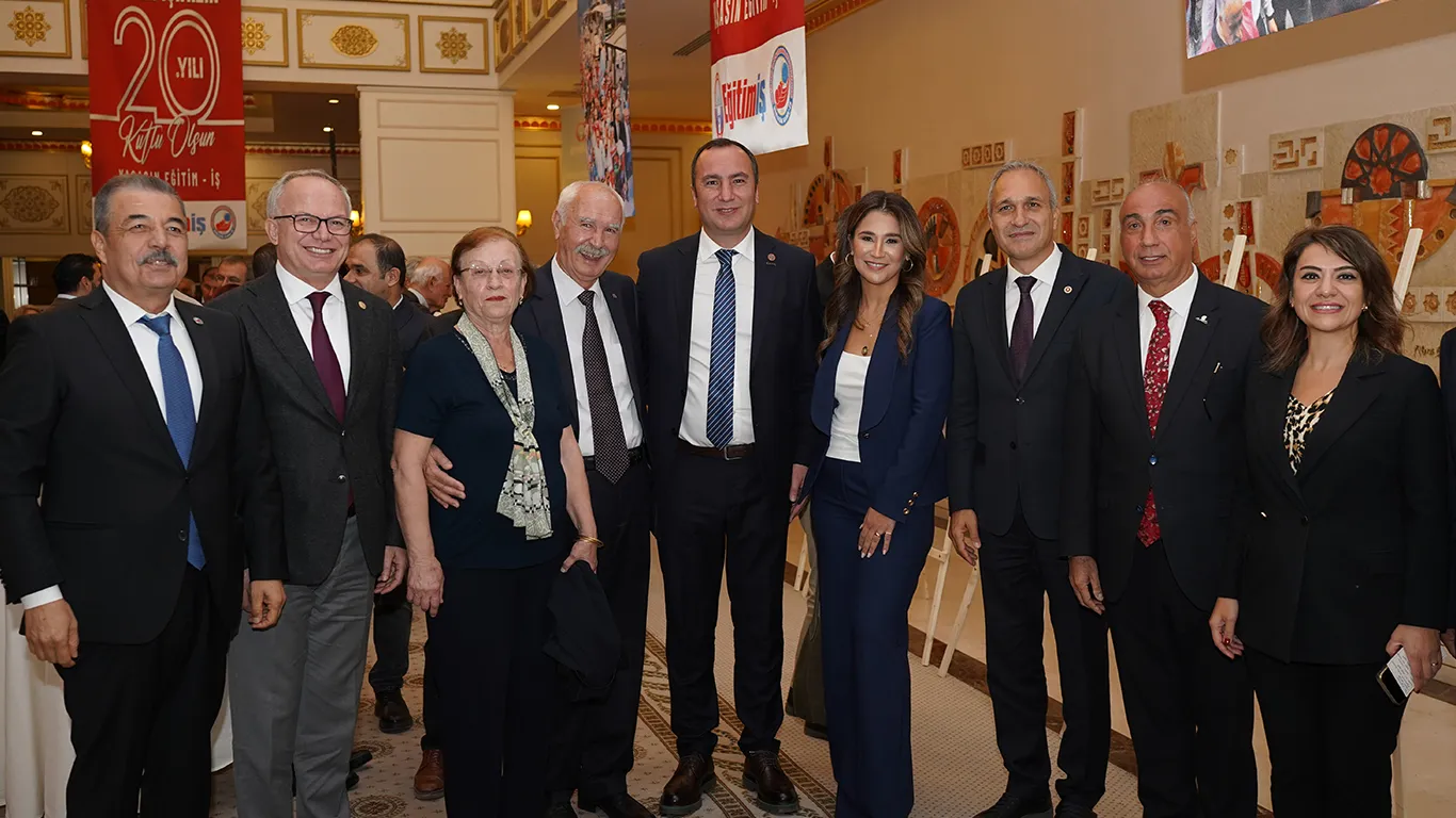 Akşam gerçekleştirilen kutlama programı saygı duruşu ve İstiklal Marşının okunması ile başladı. Eğitim-İş Kurucuları, önceki dönem MYK üyelerimiz, Şube ve İl Temsilcilik Başkanları ile Yönetim Kurulu Üyeleri, Konfederasyonumuz Birleşik Kamu-İş Genel Başkanı Orhan Yıldırım, konfederasyonumuza bağlı sendikaların yönetim kurulu üyeleri, CHP Genel Başkan Yardımcıları Gamze Taşçıer, Suat Özçağdaş ve Yalçın Karatepe, CHP Ankara Milletvekili Aliye Timisi Ersever, Çağdaş Yaşamı Destekleme Derneği (ÇYDD) ve Atatürkçü Düşünce Derneği (ADD) yönetim kurulu üyeleri, Cumhuriyet Ankara Temsilcisi Sertaç Eş ve çok sayıda üyemizin katılım sağladığı etkinlikte aynı zamanda Fakir Baykurt Onur Ödülleri de sahiplerini buldu. Programı nedeniyle etkinliğimize katılamayan CHP Genel Başkanı Özgür Özel, gönderdiği mektupla Eğitim-İş’in 20. yılını kutladı.m
