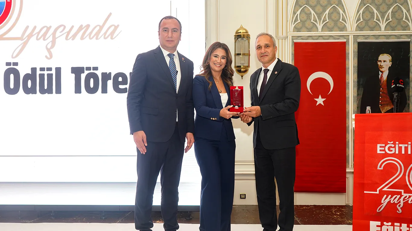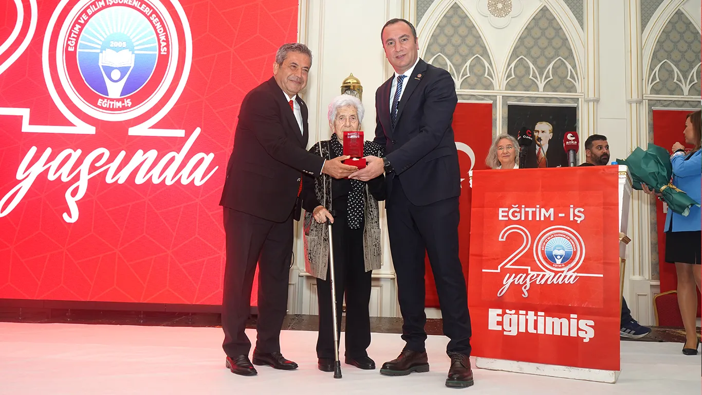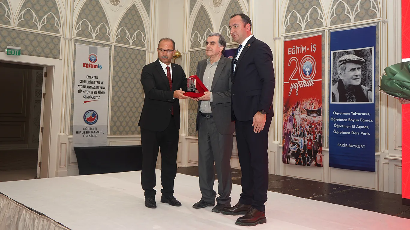 Ayrıca önceki dönem genel başkanlığımızı yapan Yüksel Adıbelli, Veli Demir, Mehmet Balık, Levent Akça, Orhan Yıldırım ve 12 Eylül faşizminin ardından kurulan ilk sendika olan ilk Eğitim-İş’in kurucusu Niyazi Altunya’ya da sendikal mücadelemize verdikleri emeklerden dolayı ödüllerini takdim ettik.