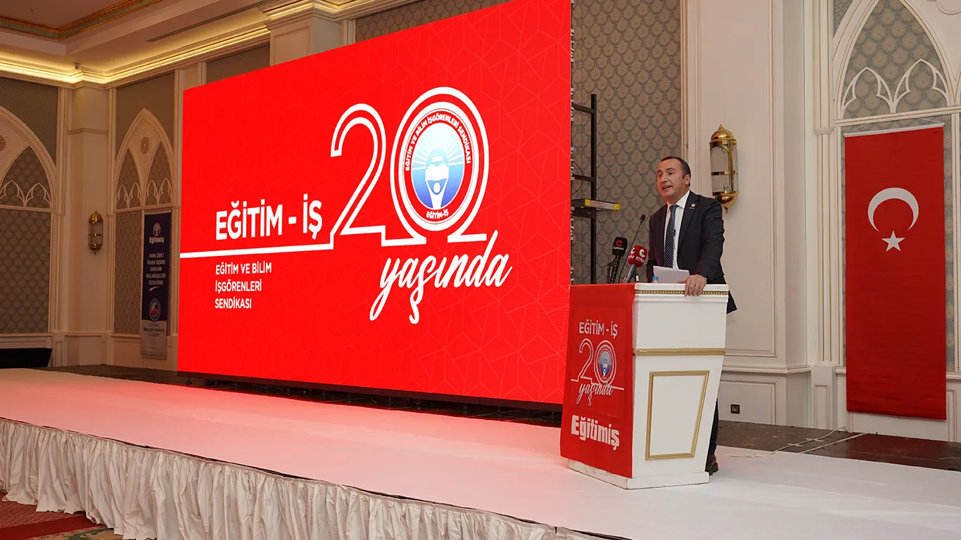 Bugün, Cumhuriyetimizin temellerine yürekten bağlı, emek mücadelesinin öncüsü ve aydınlanma yolunun kararlı neferi olan Türkiye’nin en büyük eğitim sendikası Eğitim-İş’in 20. kuruluş yıl dönümünde huzurundayız.
