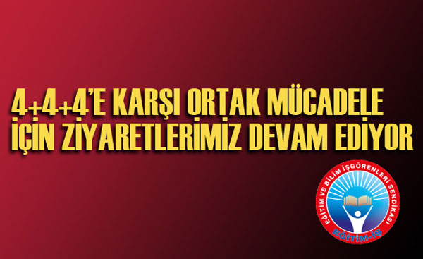 Eğitim-İş’in, 4+4+4 eğitim sistemine karşı ortak mücadele oluşturmak için başlattığı kurum ve kuruluş ziyaretleri bugün de devam etti.