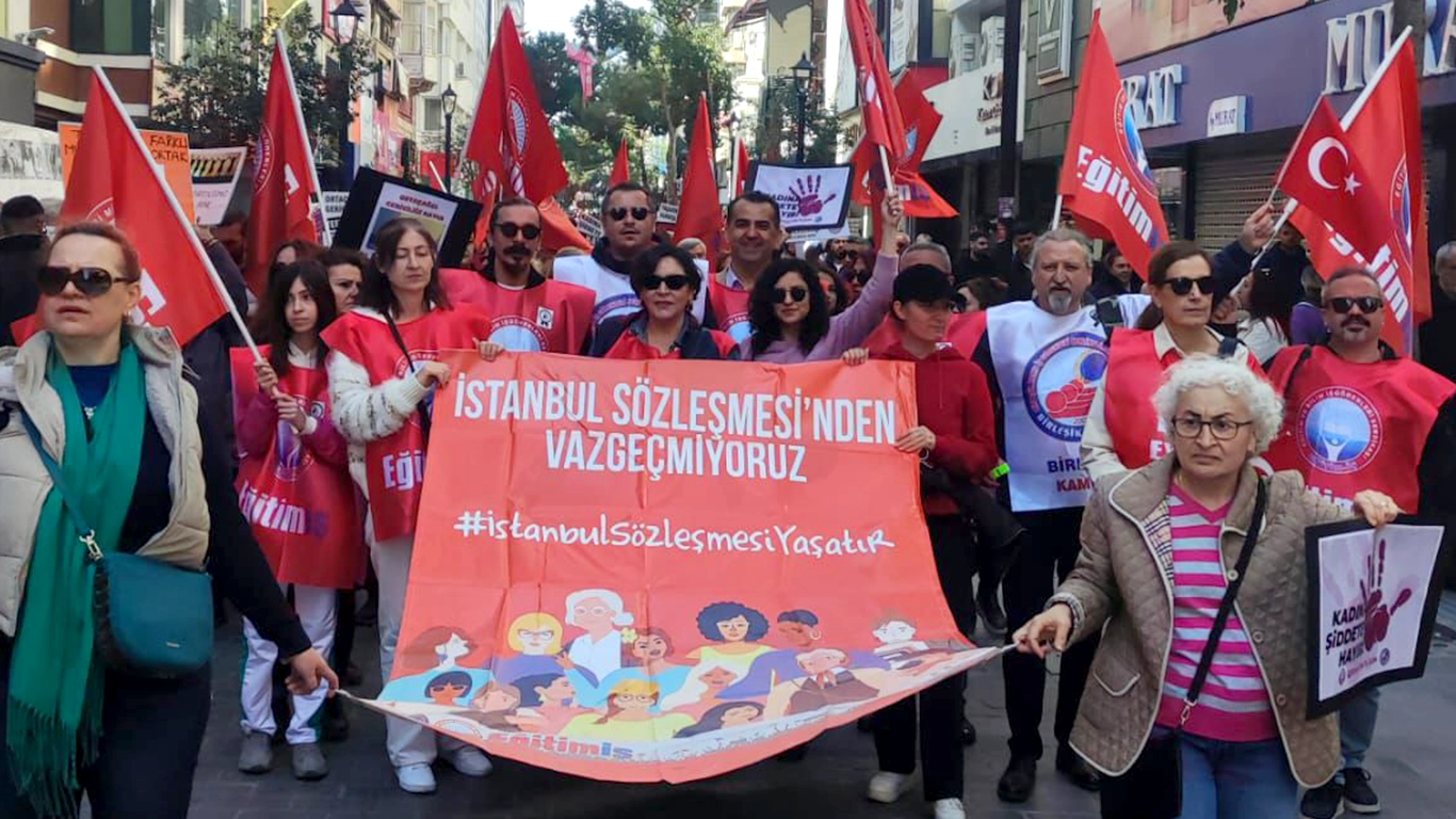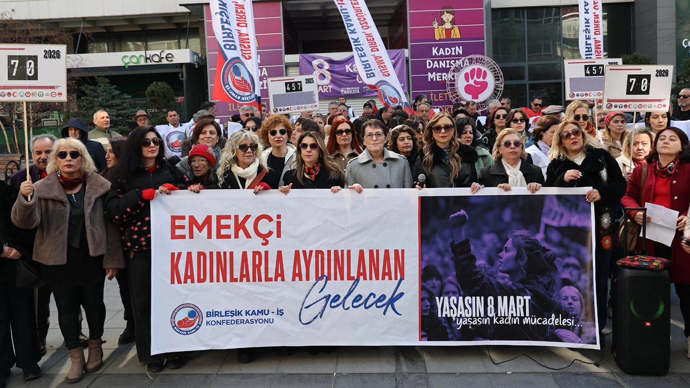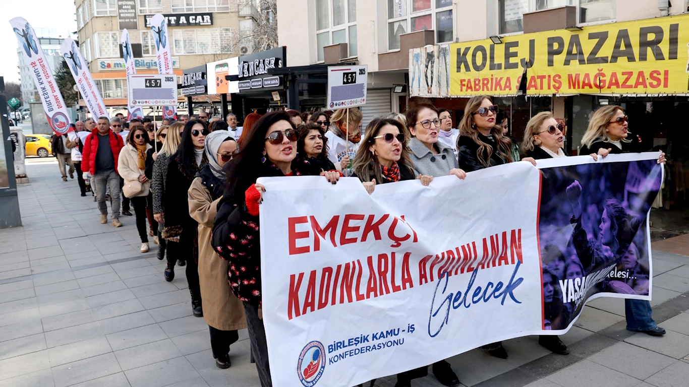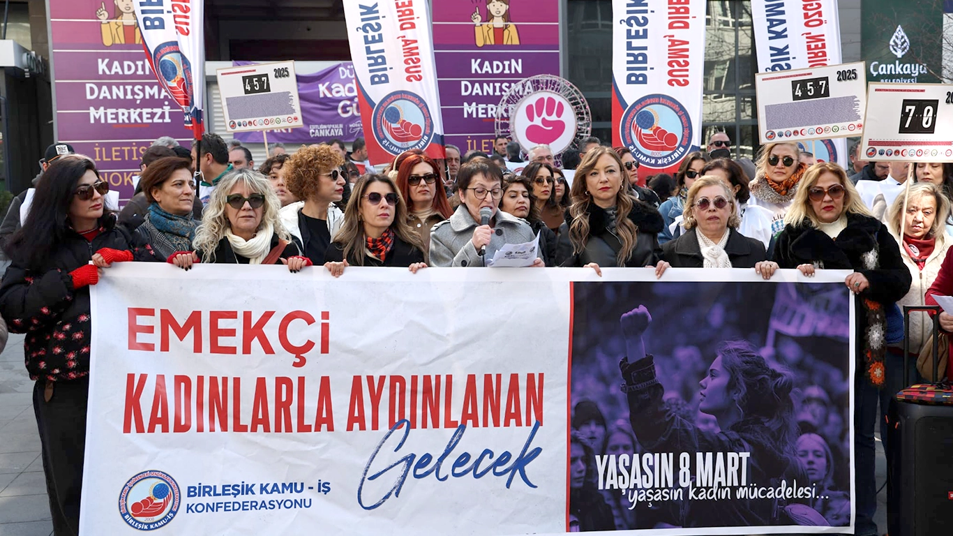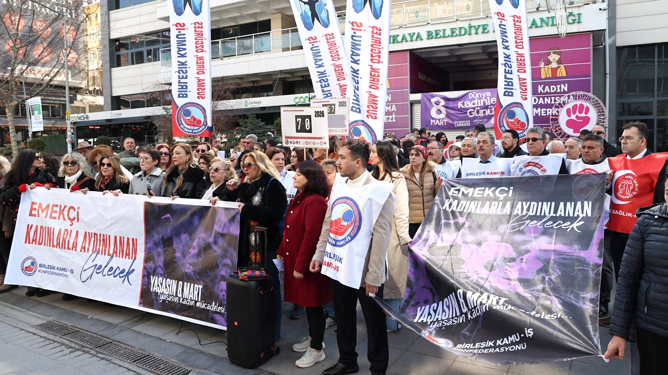 Ankara’da ise Konfederasyonumuz Birleşik Kamu-İş tarafından düzenlenen etkinliğe katıldık. Kadın üyelerimizin öncülüğünde konfederasyon genel merkezimizden başlayan yürüyüşümüzü, Sakarya Meydanı’nda yaptığımız basın açıklamasıyla tamamladık.