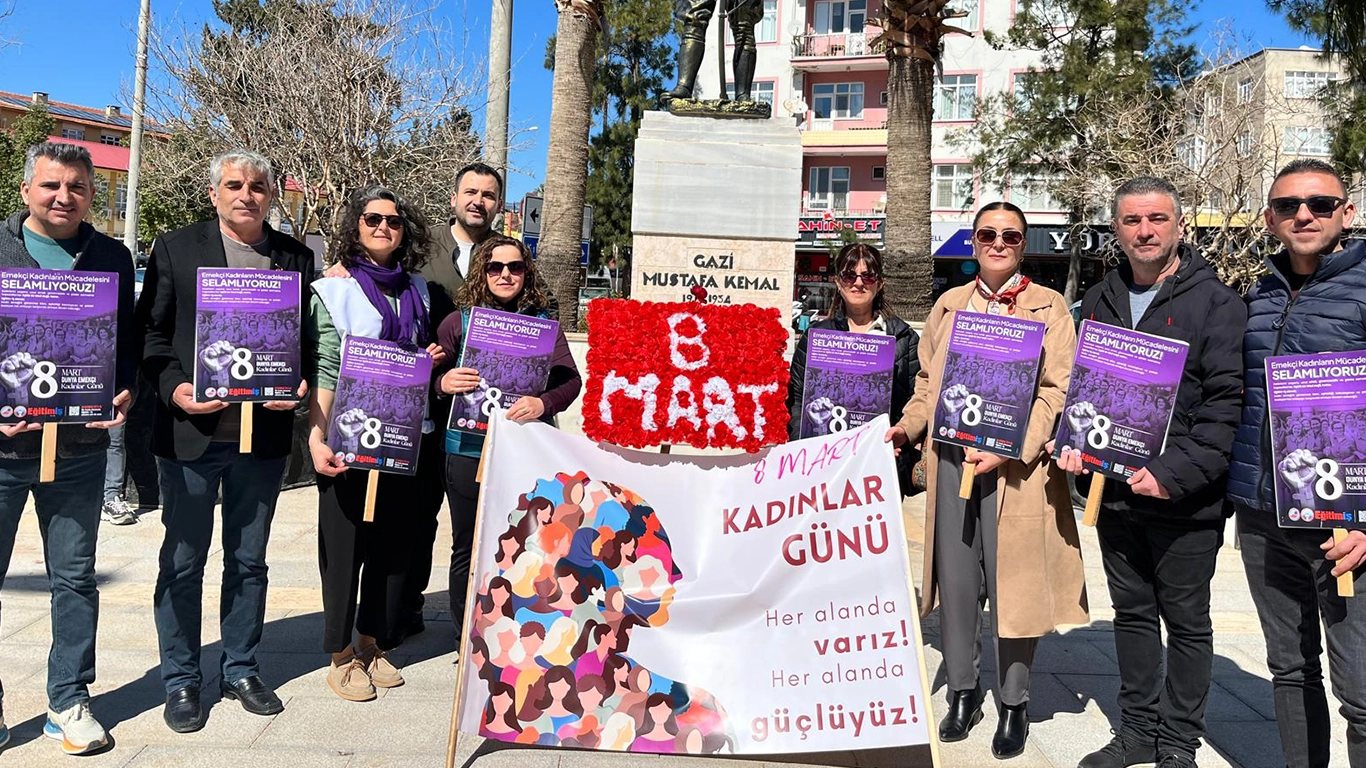 Eğitim-İş olarak; kadın emeğini, eşitliği ve özgürlüğü savunmak için 8 Mart Dünya Emekçi Kadınlar Günü’nde yurdun dört bir yanında meydanlardaydık.