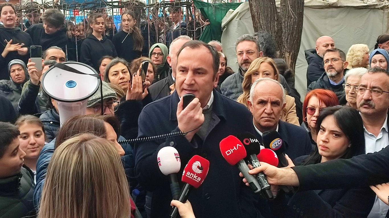 Eğitim-İş olarak; İlçe Milli Eğitim Müdürlüğü’ne tahsis edilmek amacıyla boşaltılmasına karar verilen 99 yıllık Mimar Kemal Ortaokulu’na sahip çıkmak ve asırlık eğitim yuvamızı korumak için eğitim emekçileriyle beraber okul önündeydik.