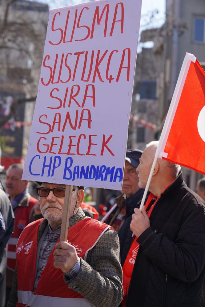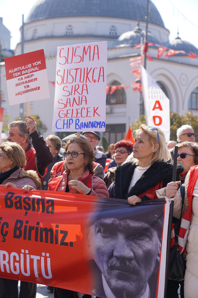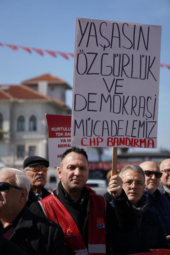 Yürüyüşe Birinci Meclis'ten başladıklarını anımsatan Özbay, "Birinci Meclis, cumhuriyeti inşa ediyordu, bugünkü Meclis cumhuriyetin kazanımlarını tasfiye ediyor. O yüzden bu yürüyüşe Birinci Meclis'ten başladık. Bandırma, Cumhuriyetin, Atatürk'ün kenti. Kurtuluşa giden yoldaki geminin adı da Bandırma. Biz hep aynı gemideyiz. Halka ait olan cumhuriyete sahip çıkmak için adım adım ülkeyi dolaşıyoruz" diye konuştu.