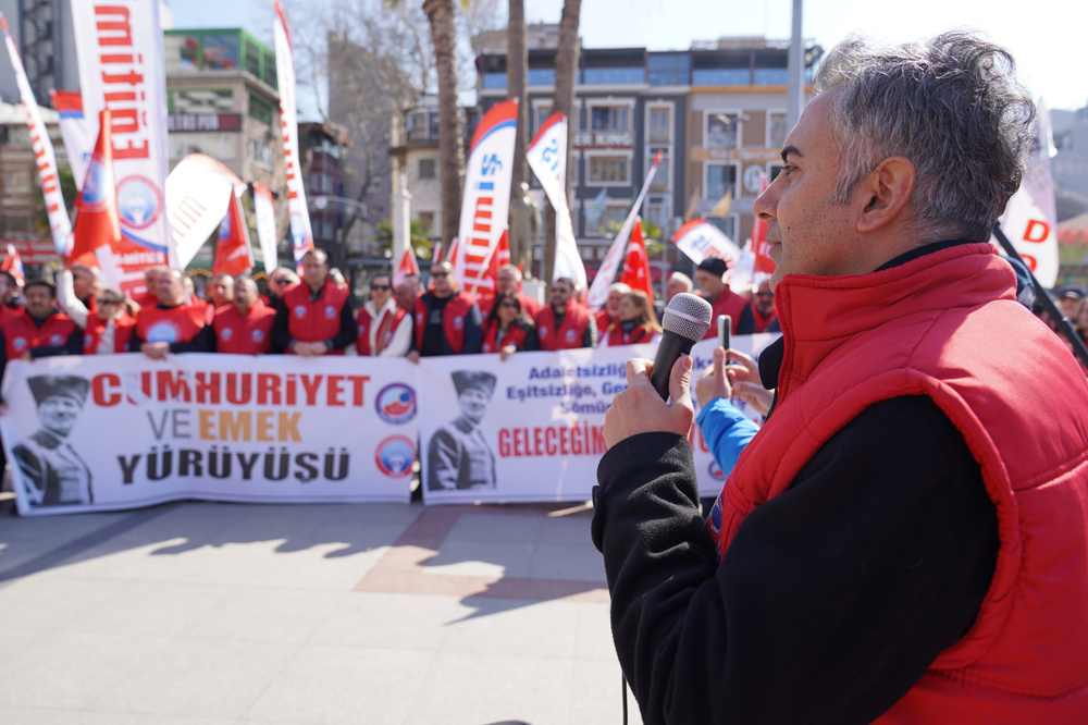 Cumhuriyet ve Emek Yürüyüşümüz çerçevesinde Balıkesir Bandırma'da konuşan Genel Başkanımız Kadem Özbay, "MEB çocuk işçi bulma bürosuna dönüştü. Yürümekle yollar aşınmaz belki ama bu ülkenin çocuklarından aldığınız her bir şeyi anlatacağız" dedi.