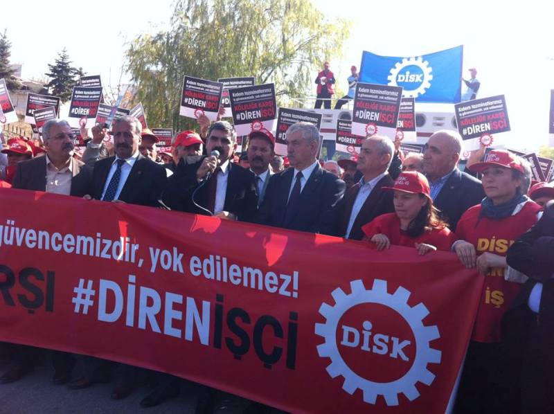 Genel Başkanımız Veli Demir, Genel Sekreterimiz Şenol Eyüboğlu ve Genel Eğitim Sekreterimiz Mehmet Akıncı, DİSK üyesi işçilerle birlikte, “Köleliğe Karşı Diren İşçi” kampanyasını adı altında Arı Stüdyoları önünden, Çalışma ve Sosyal Güvenlik Bakanlığı'na yürüdü. İşçilere “Kıdem hakkımız engellenemez”, “Kıdem tazminatlarımız iş güvencesidir, yok edilemez” yazılı pankart ve dövizler açtı.
