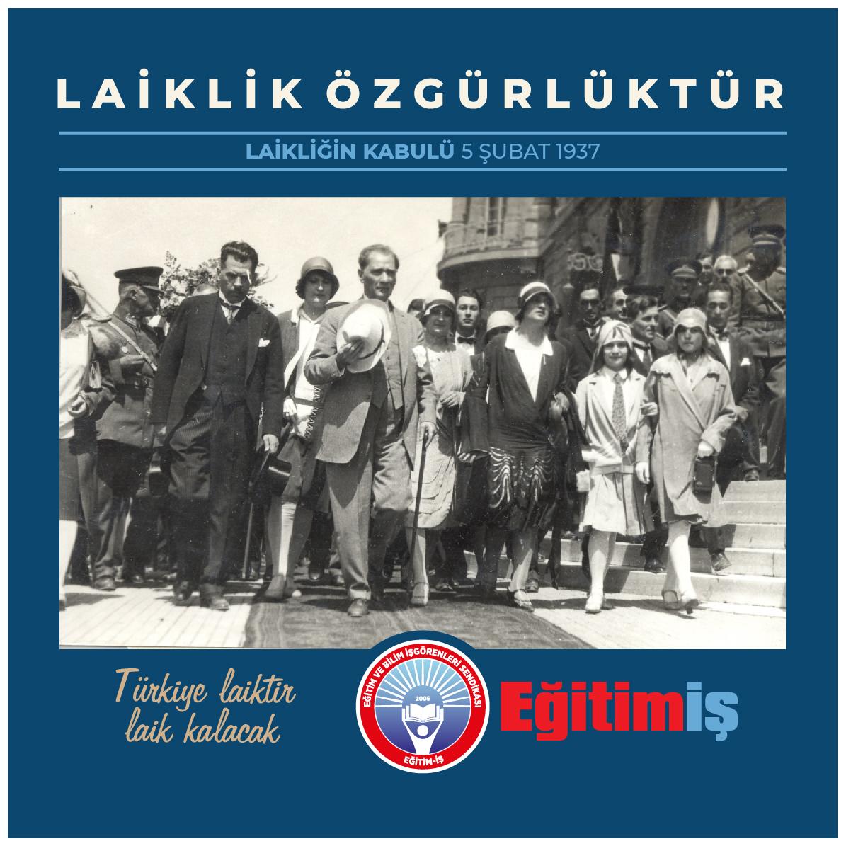 87 yıl önce 5 Şubat 1937’de Anayasa’ya laiklik ilkesi eklenmiş ve Türkiye Cumhuriyeti laik bir devlet olarak tanımlanmıştır.