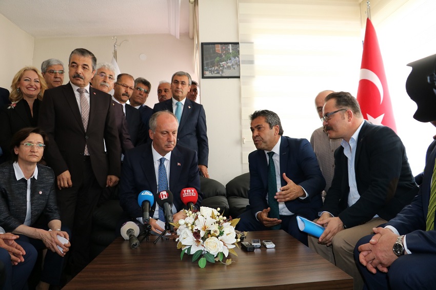 Muharrem İnce'ye, CHP Grup Başkanvekili Engin Altay, CHP Genel Başkan Yardımcısı Veli Ağbaba ve CHP Balıkesir Milletvekili Namık Havutça eşlik ettiler.