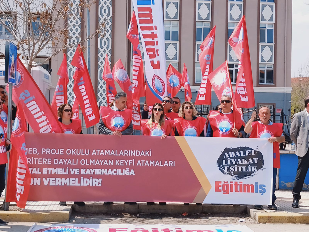 Geçtiğimiz hafta 15 Temmuz Şehitleri Fen Lisesi önünde gerçekleştirdiğimiz basın açıklamasında, proje okullarına yapılan liyakatsiz öğretmen atamalarını protesto etmiş; bu sürecin şeffaflıktan uzak, kayırmacı ve eğitimin niteliğini hiçe sayan bir anlayışla yürütüldüğünü kamuoyuyla paylaşmıştık.