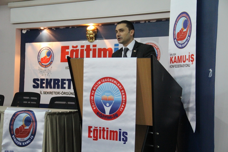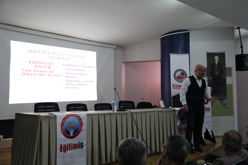 Genel Başkanımız Veli Demir’in, sendikal ve siyasal süreci değerlendiği, Eğitim-İş’in ilkelerini anlattığı açılış konuşmasının ardından, programın ilk bölümünde İsmail Hakkı Kurt, “Türkiye’de ve Dünyada Sendikacılık” konulu sunum yaptı.