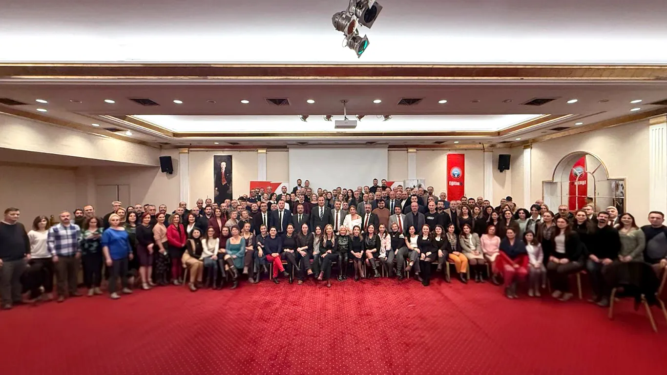 Eğitim gündemini, eğitim emekçilerinin sorunlarını, örgütlü mücadelemizi ve yeni yıl yol haritamızı değerlendirdiğimiz toplantımıza katılan, görüş ve önerileriyle katkıda bulunan tüm şube başkanlarımıza, ilçe temsilcilik başkanlarımıza, iş yeri temsilcilerimize, şube yöneticilerimize, değerli üyelerimize ve ev sahiplikleri için Denizli 1 ve 2 No’lu şubelerimize ve İzmir 1, 2, 3, 4, 5, 6 ve 7 No’lu şubelerimize teşekkür ediyoruz.