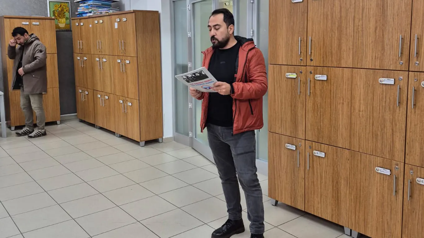 Eğitim-İş olarak, öğretmene yönelik şiddeti protesto etmek, öğretmenlik mesleğinin onuruna sahip çıkmak için hazırladığımız bildiri, Türkiye’nin dört bir yanındaki okullarda, öğretmen odalarında, ikinci ders teneffüsünde okundu.